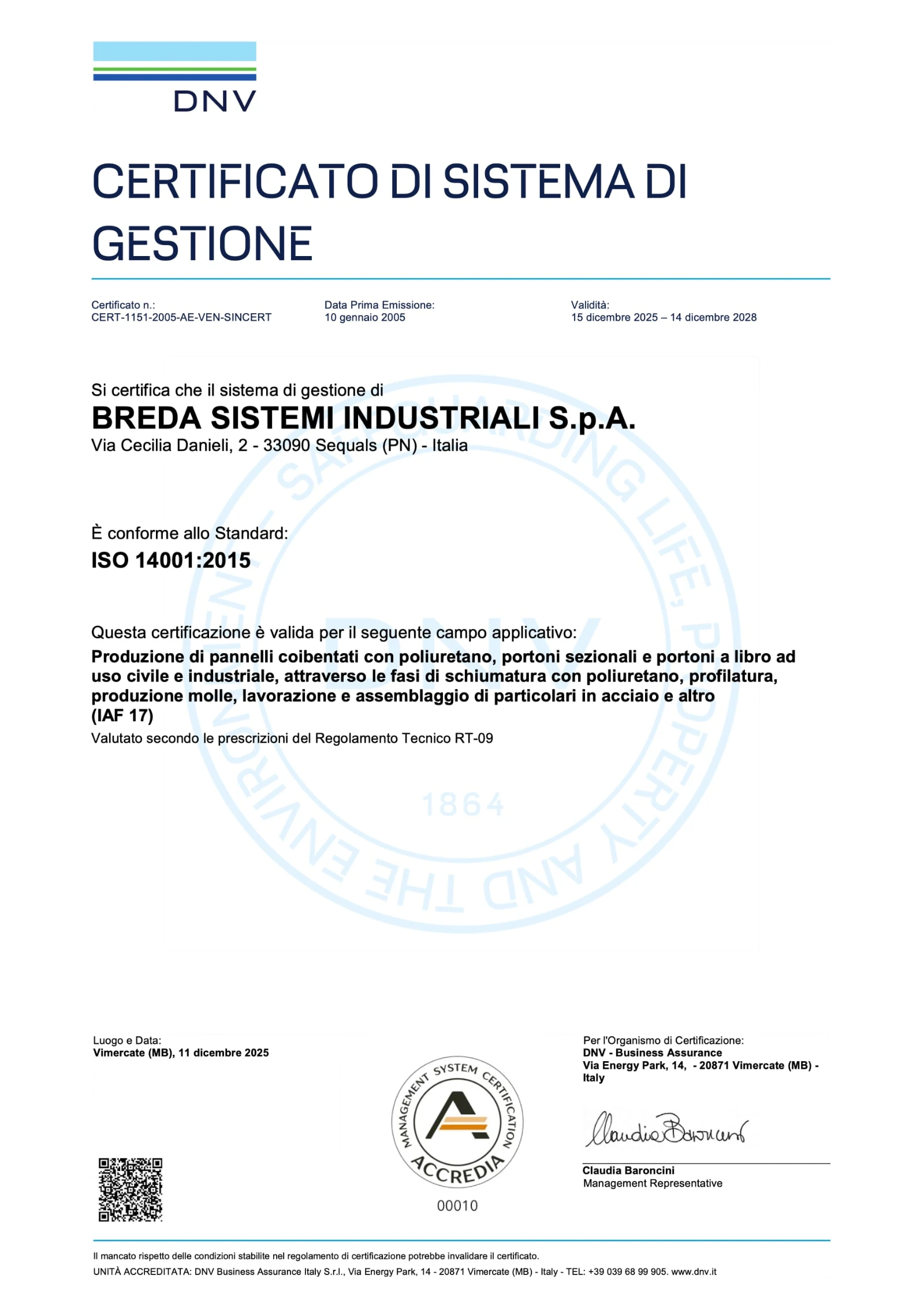 Sin dai primi anni 2000 l’azienda ha adottato il sistema di gestione per la qualità conforme alla norma UNI EN ISO 9001 e il sistema di gestione ambientale in conformità alla UNI EN ISO 14001, al fine di migliorare le proprie prestazioni sia dal punto di vista produttivo, ottimizzando i processi aziendali, che da quello ambientale, al fine di ridurre gli impatti sullo stesso.